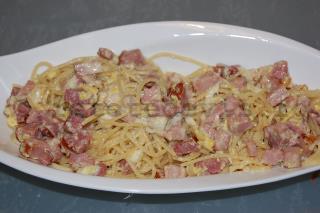 Cand kaiserul e putin rumenit, adaugati spaghetele fierte si scurse.