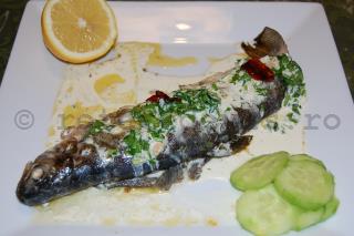 Pastravul prajit in putin ulei de masline, cu sos de smantana, patrunjel si usturoi este un mod delicios de a-l savura.