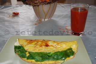O omleta se prepara in cateva minute, deci e ideala atunci cand nu aveti timp pentru ceva mai laborios. Combinatia dintre frittata cu spanac crud si un pahar de suc de rosii proaspat cu putin piper (atentie la ambalaj, sa fie cat mai natural) este mai mult decat binevenita pentru a va reface fortele necesare unei zile de lucru.