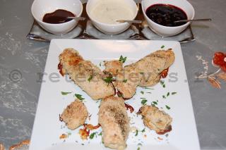 Varianta mea de servire aduce un acompaniament variat de trei sosuri cu arome un pic mai frantuzesti(pentru ca imi place sa combin cele 2 stiluri): un sos de branza cu chimen, un sos de coacaze negre si un sos de vin rosu cu ciocolata.