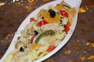 Salata de pui cu portocale este un adevarat deliciu de iarna. Portocalele zemoase dau un plus de savoare unei simple salate de pui, iar dressing-ul special, bazat pe suc de portocale si condimente, aromatizeaza subtil intreaga salata.