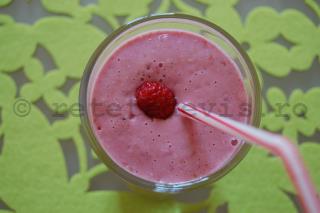 Se serveste imediat, pentru a nu pierde vitaminele si antioxidantii din acest minunat shake de zmeura.