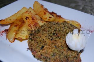 Carnea de miel fripta pe gratar pana capata o culoare si o mireasma uluitoare este delicat atinsa de un voal de mustar de Dijon si apoi imbracata in mantia de pesmet, plante aromatice si parmezan. Rezultatul este de mare clasa: carnea aromata si suculenta contrasteaza elegant cu stratul crocant exterior. Un gust "crispy" delicios, o explozie de arome la fiecare inghititura, o experienta noua, ce merita incercata (mai ales ca Pastele dureza trei zile si poate vreti sa mai diversificati retetele clasice).