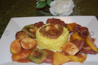 Daca va doriti o vacanta pe insule, dar nu aveti nici timp, nici bani, atunci puteti sa va oferiti macar o cina exotica. Merita! Va fi o experienta inedita, pe care sunt convinsa ca o veti repeta. Trebuie sa va mai spun ca aceasta combinatie de vin fiert cu chilli, sofran si fructe tropicale poate avea un efect afrodisiac?...