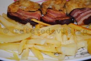 Cu snitele de vinete si costita afumata coapta, cartofii "prajiti" in cuptor sunt un deliciu. Evident, si cu o salata de varza noua sau de rosii .