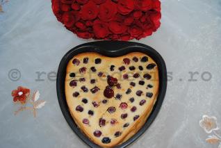 Clafoutis de cirese este un desert originar din regiunea Limousin (Franta), renumit pentru versiunea cu cirese negre (dar se poate face si cu fructe de padure, caise, nectarine, etc).