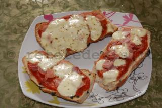 Aceste mini-pizze seamana cu bruschetele italiene, singura diferenta fiind ca bruschetele sunt mai mici si nu se servesc pe post de fel principal ( ca pizza), ci ca antreu.