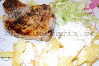 Este o garnitura perfecta pentru un cotlet de porc la tava sau la tigaie, dar se poate manca si ca fel principal, doar cu o salata de varza noua.