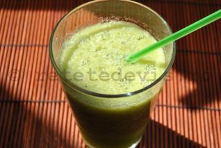 Acest smoothie verde are un ingredient -vedeta: graul verde. Despre graul verde se spune ca este un excelent remineralizant si tonifiant al organismului, stimuland intreg sistemul imunitar. Continutul sau impresionant de minerale (fier, magneziu, calciu, fosfor, potasiu,etc), vitamine (contine mai multa vitamina A decat morcovii si mai multa vitamina C decat citricele, dar si vit. B,E,K,D), aminoacizi (ajuta la formarea tesutului muscular), clorofila(efect de reducere a anemiei, de oxigenare a sangelui),numeroase enzime, ridica sucul de grau verde incoltit la rang de aliment-medicament.
