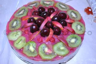 -pt decor: 2 plicuri de Tort Gelee, 3 kiwi,3 nectarine, cateva cirese negre, coacaze rosii