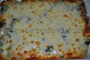 Se da tava la cuptor, la 180-200 de grade, aprox. 20 de minute, pana cand se rumeneste branza.