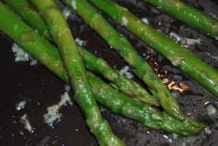 Sparanghelul verde se rupe si se indeparteaza partea fibroasa (sau daca e deja taiat, se mai taie un cm din capat, sa se vada seva din tulpina). Apoi se spala si se fierbe in apa cu putina sare. Se fierbe maxim 5 minute, la foc mare.