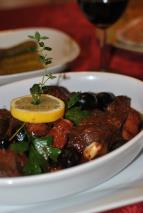 -pentru sos:vin rosu, pasta de rosii (bulion), masline, lamaie, dafin, cimbru, piper