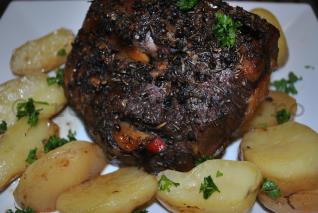 Pulpa de miel australian la cuptor, in sos de vin rosu, cu crusta picanta si crocanta surprinde printr-o suculenta si aroma incredibila. Deoarece se coace la foc mic, cateva ore, carnea pastreaza toata sucurile in interior si efectiv ti se topeste in gura...Nemaipomenit de gustos, un adevarat festin pentru o zi de sarbatoare!