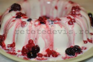 Dar e mult mai aspectuoasa si delicioasa cu sos cald de fructe de padure (incalziti fructele de padure cu zaharul si eventual cateva picaturi de suc de lamaie, 2 minute). Sosul cald topeste putin panna cotta, iar contrastul este deplin.
