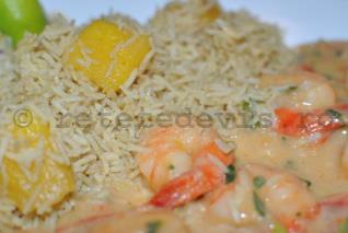 Orezul basmati la aburi este delicios,dar, daca alegem o varianta bruna, mai bogata in fibre, si il combinam cu cateva bucatele de mango, vom ontine un preparat exotic deosebit. Parfumul fructat, acompaniat de un amestec de condimente orientale, vor oferi o savoare speciala acestei retete de orez.