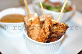 Satay de somon este una dintre cele mai delicioase si elegante moduri de a servi somonul. Originea asiatica a acestei retete aduce un plus de exotism si incita printr-o aroma neobisnuita de alune si condimente thailandeze.