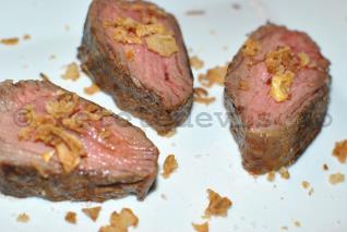 Observati ca vita ramane roz in mijloc, semn ca e mediu facuta. Puteti sa serviti si cu salata de spanac cu nuci si dressing de lamaie si mustar.