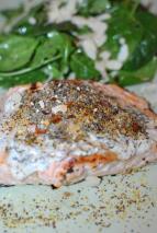 Somonul in crusta de iaurt cu mustar a fost servit cu o salata de rucolla si fulgi de migdale, care a completat perfect simfonia de arome..