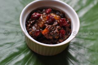 In momentul servirii decorati cu fructe uscate: afine, caise, coji portocale confiate, etc.