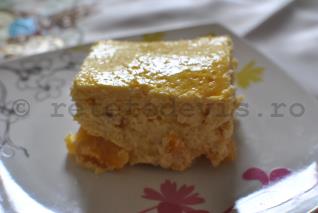 Se unge o tava inalta de yena cu foarte putin ulei si se toarna compozitia. Se coace la 180 de grade, 20 de minute si apoi , 30-40 de minute la 160 de grade. Trebuie sa fie legata si usor rumenita (galbena) la final.