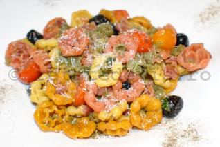 Pastele pe care le-am pregatit se numesc "Cappeli da chef ai 5 sapori" (Bonete de bucatar cu 5 arome) si au fost intr-adevar demne de numele de paste italiene.