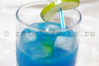 Se pun intr-un shaker: ginul, blue curacao, sucul de lime, 4 cuburi de gheata si se agita puternic 30 de secunde.